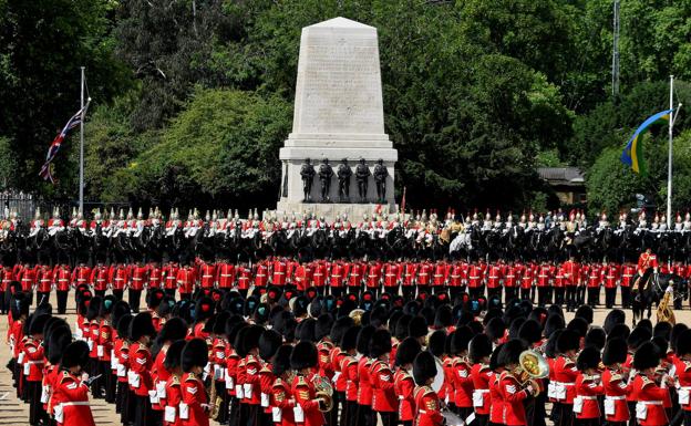«Un mar de gente», según la descripción adoptada por la BBC se concregó este jueves en torno al Palacio de Buckingham y otros edificios de la Monarquía y del Gobierno en el centro de Londres, para ser parte de 'Trooping the Colour', el desfile militar que marca el inicio de los actos del Jubileo de Platino de Isabel II, con motivo de sus siete décadas de reinado.