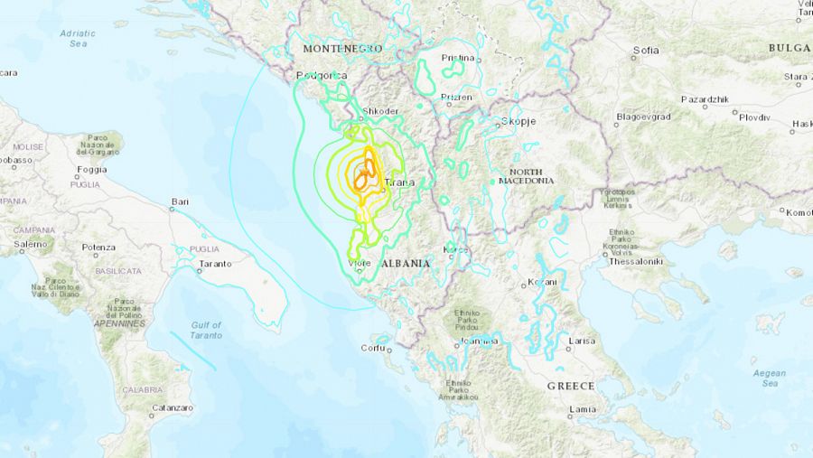 El epicentro del terremoto se localizó en el mar Adríatico a 40 kilómetros al oeste de Tirana, la capital albanesa, y se pudo sentir en los Balcanes y en la región italiana de Puglia.