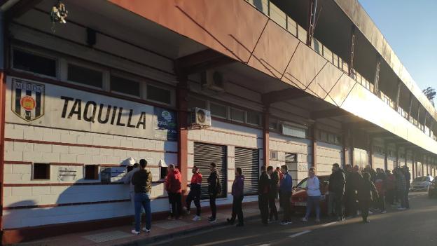 Colas ayer en el Romano por el partido de Copa. Los