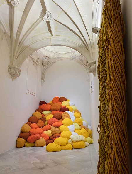 La muestra ‘Textiles instalativos. Del medio al lugar’, en el CAAC de Sevilla, propone un acercamiento al textil en el arte contemporáneo a partir de su relación con el espacio estableciendo además un paralelismo entre la composición del propio medio textil y los estratos históricos que se esconden en el privilegiado espacio monumental que ocupa el museo.